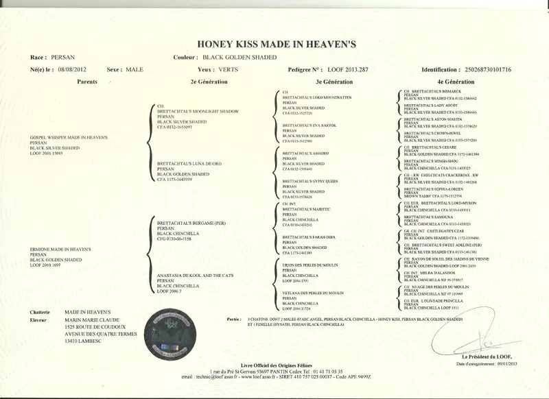 Made in Heaven Honey KissPersan Black golden shadedné le 08 Aout 2012 Mon ourson Voir son pedigree